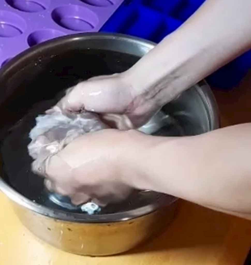 搓揉的時候愛玉子切勿離開水面,以免凝固的時候愛玉中含氣泡。